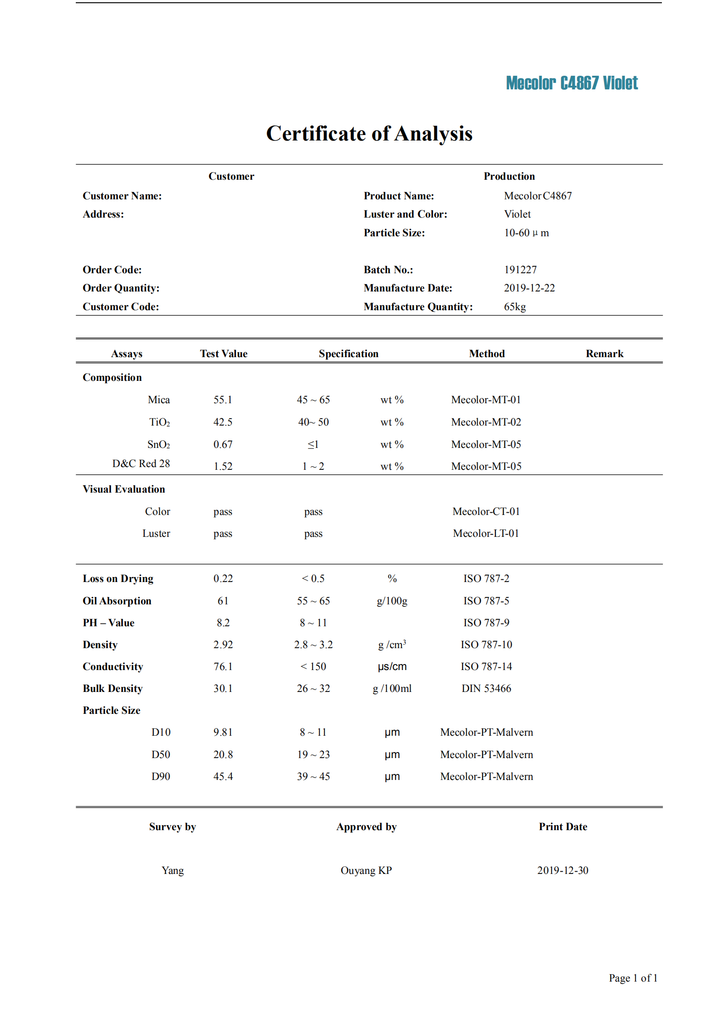 Certificate of Analysis